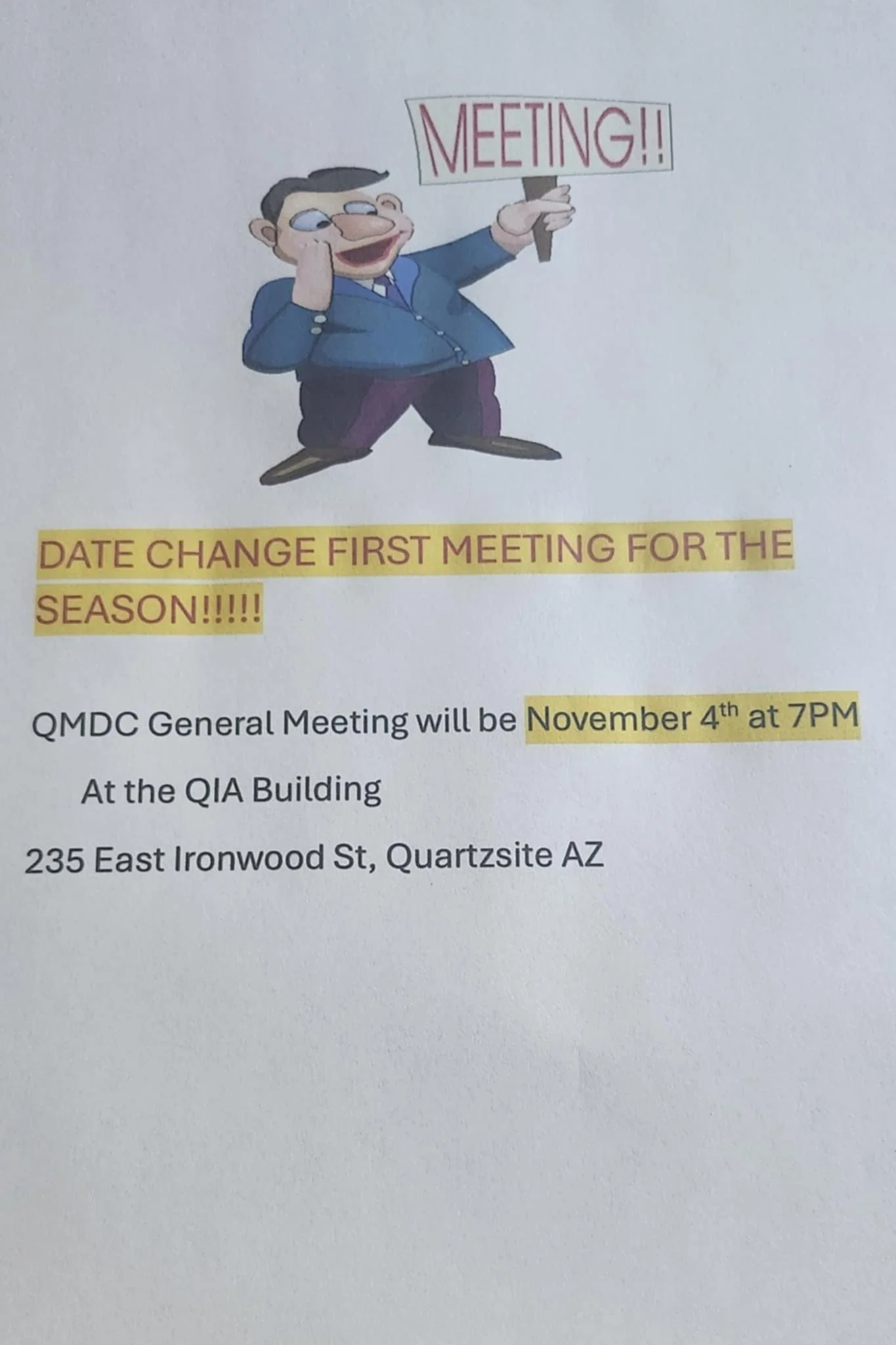 November 4, 2025 Meeting at the QIA 7pm